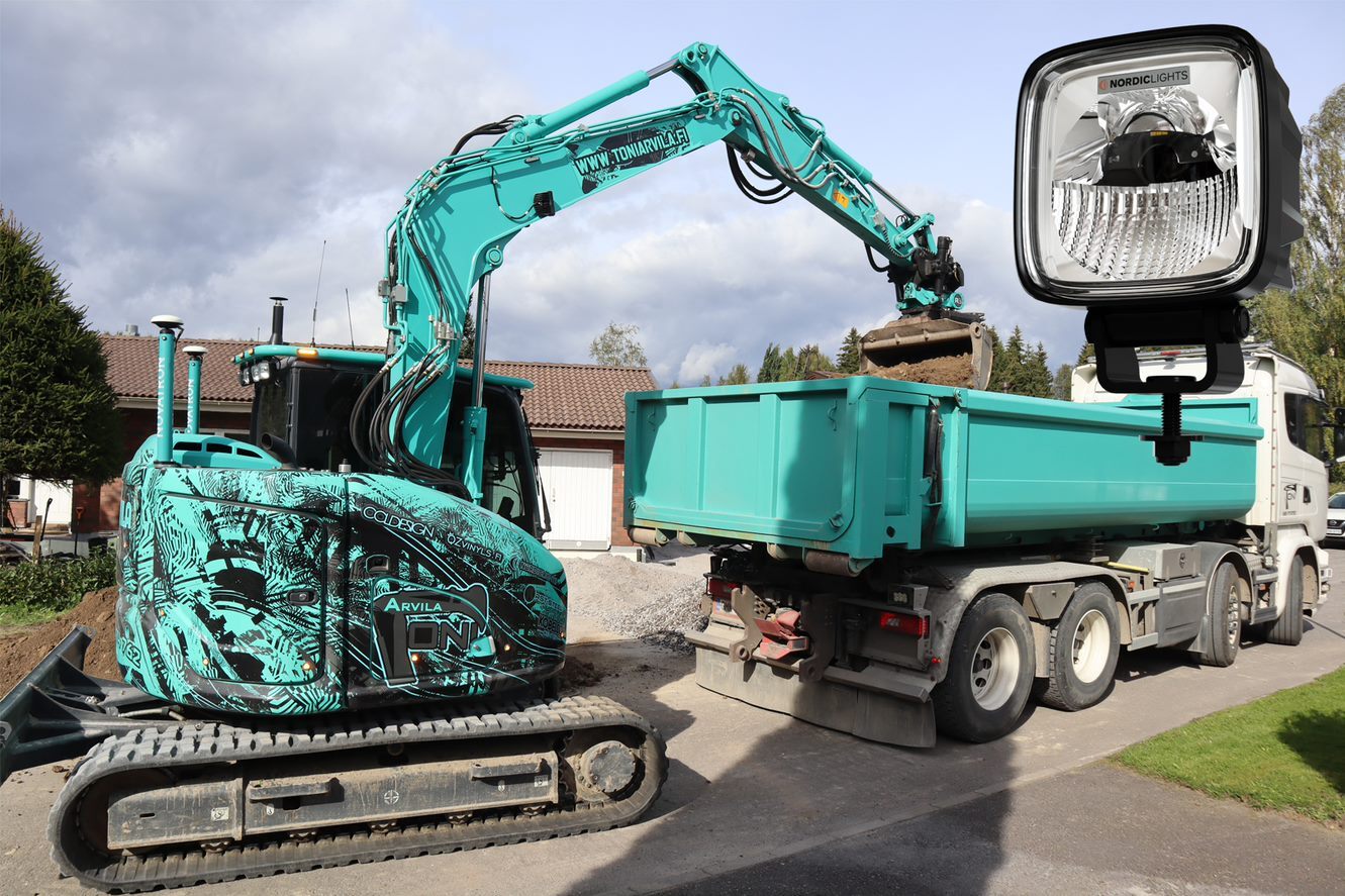 ”Tällaiset valot asennetaan yleensä valaisemaan koneen sivut ja takaosa. Näin ne lisäävät ympäristön työturvallisuutta, sillä muu liikenne ja ihmiset koneen ympärillä eivät häikäisty”, kertoo Mattias Wikman Nordic Lightsilta.
