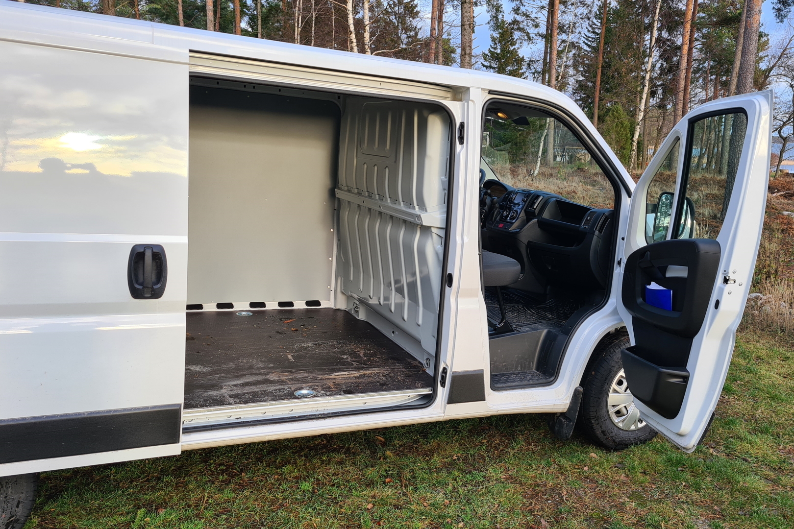 Takaovien tuulisalvat vapautetaan näppärästi ovessa olevien painonappien avulla. Näin ovet avautuvat ”levälleen” mahdollistaen trukilla lastaamisen. Tavaratilan pituus on 3,1 ja leveys 1,8 metriä. Pyöräkoteloiden väliin jää tilaa 1,41 metriä, joten trukkilava sopii hyvin mukaan. Trukkilavan saa ahdettua kyytiin myös 1,3 metriä leveästä sivuovesta. Lastauskorkeus on 63 senttimetriä. Korkeutta tavaratilassa on 1,67 metriä. Tilaa on näin 10 kuutiometriä. Väliseinä on kiinteä, eikä siinä ole läpilastausmahdollisuutta. Lattia on vuorattu vesivanerilla ja seinät vanerilla. Lattialla on kahdeksan sidontalenkkiä kuorman kiinnitystä varten.