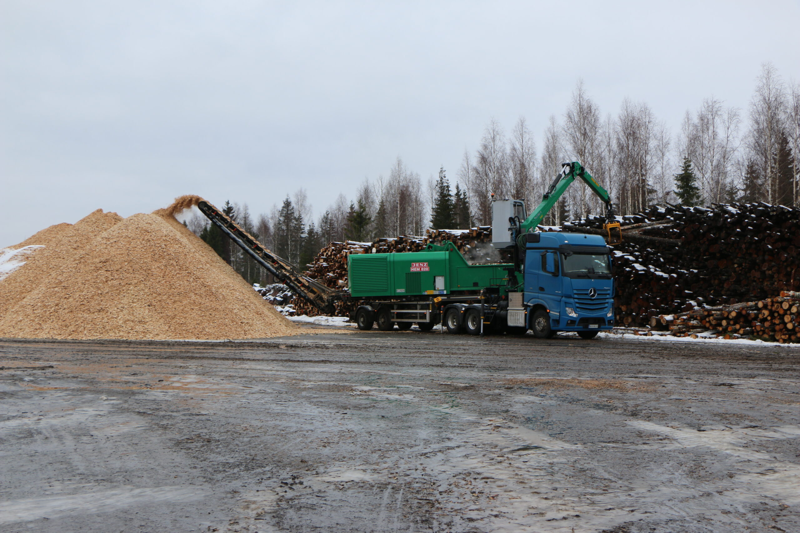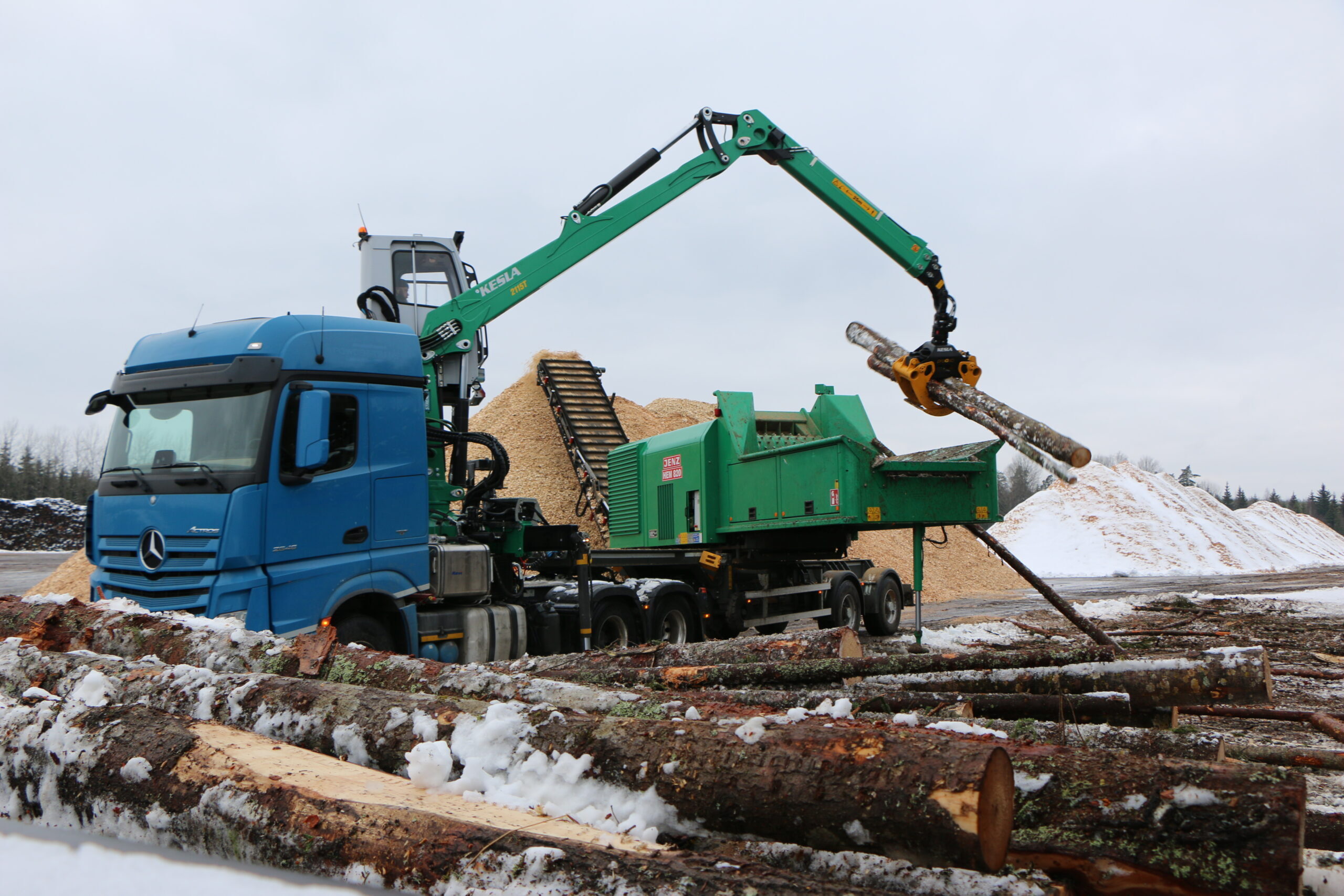 ”Jenz on ollut nyt viikon. Uuden hakkurin kanssa täytyy aina hieman hakea säätöjä ja ne alkavat nyt olla kohdallaan. Vetoauto on ollut vasta yhden päivän, joten nosturi vaatii vielä totuttelua ja itselle mieleisten asetusten hakemista. Kovin painokkaita kommentteja ei siis vielä voi antaa, mutta hyviltä kuitenkin vaikuttavat”, Laine sanoo.