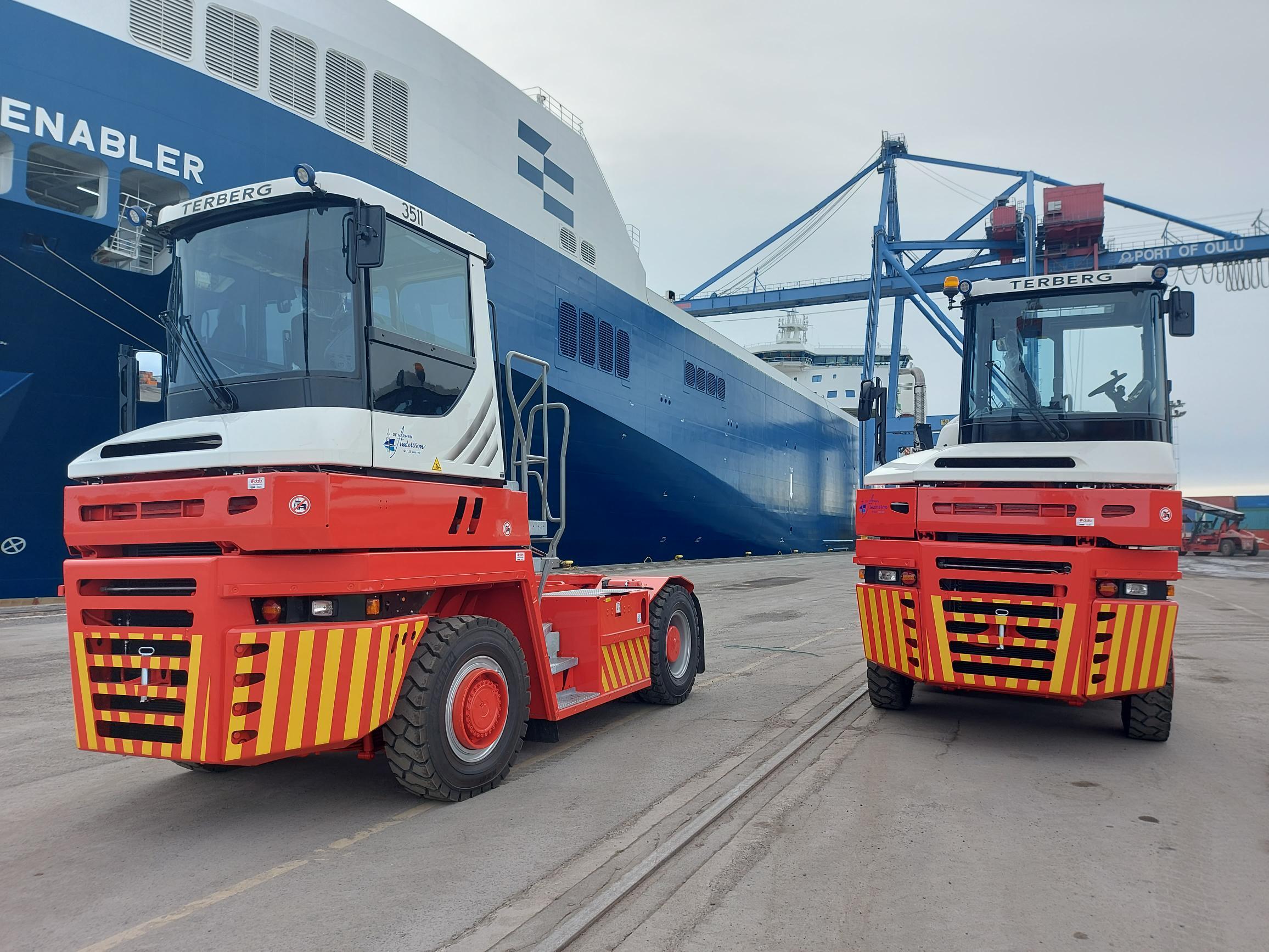 Tehokas satamapalvelu vaatii huippuluokan konekannan ja Oulun sataman luottokoneina toimivat pitkälle tulevaisuuteen Sigma Trukit Oy:n edustamat hollantilaiset Terberg-terminaalitraktorit.