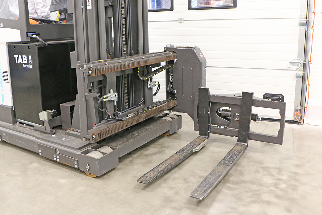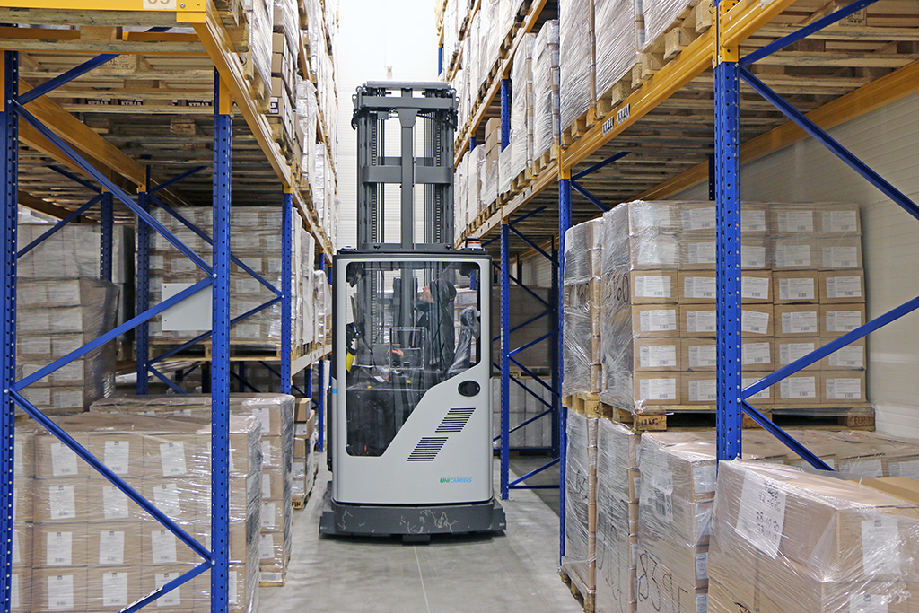 ”Unicarriers Tergo URS tarvitsee vain 1 700 millimetriä leveän käytävän hyllyjen väliin. Vastaavaa työntömastotrukki tarvitsee 1 000 millimetriä leveämmän käytävän voidakseen toimia”, sanoo aluemyyntipäällikkö Ville Jokela Rotatorilta.