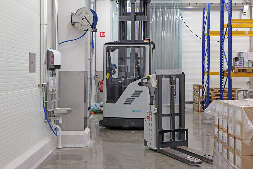 Pakastamisen jälkeen tuotteet on tietysti myös varastoitava pakkasvarastossa ennen asiakkaalle toimittamista. Korv-Görans Kebabin pakkasvarastossa on 450 lavapaikkaa, ja valmiiden tuotteiden lisäksi siellä varastoidaan myös pakastettuna tulevia raaka-aineita.