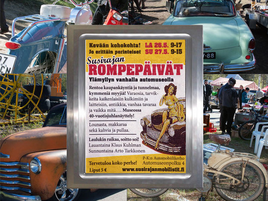 Kuningasjätkä-elokuvasta tuttu Sisu 1950 postibussi seisoi portinpielessä uljaana, kun ihmiset lukuisana joukkona saapuivat jo ties kuinka monensille Susirajan rompepäiville Liperin Ylämyllyn vanhalle automuseolle. Tämä ja aikojen saatossa moni muu näytteillä ollut vekotin tässä masinistisesti ja mobilistisesti orientoituneessa keitaassa on vuokrattu kuskeineen useisiin kotimaisiin tuotantoihin viimeisten parinkymmenen vuoden aikana.