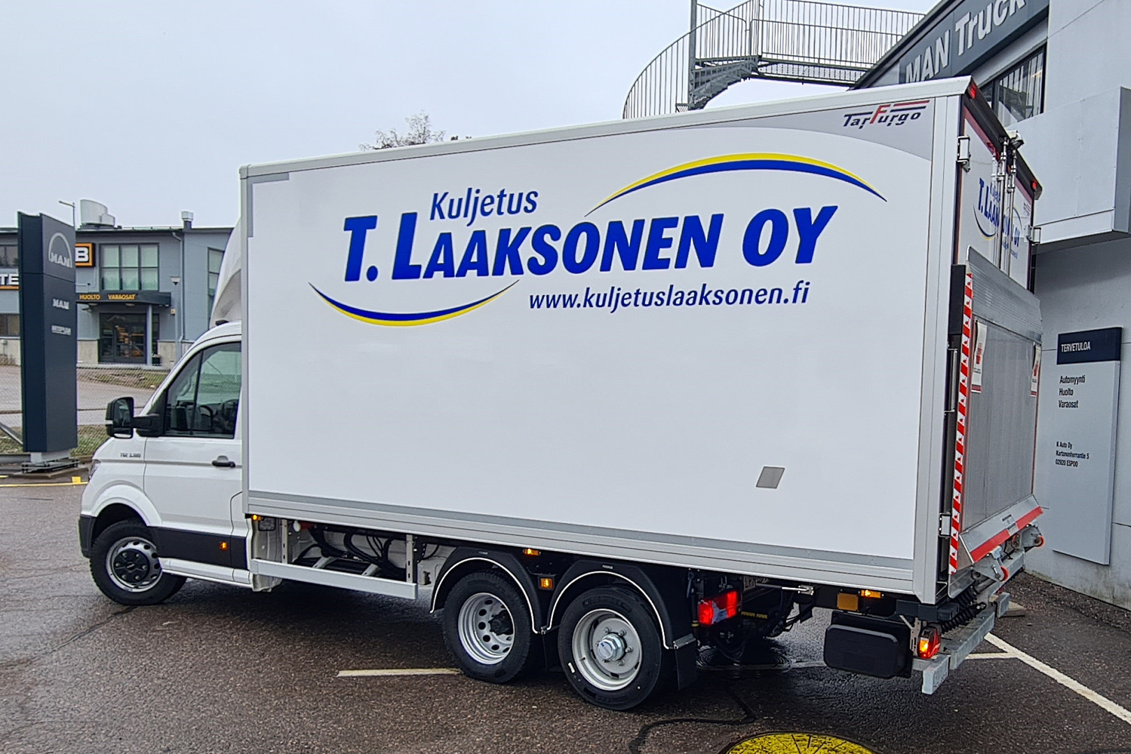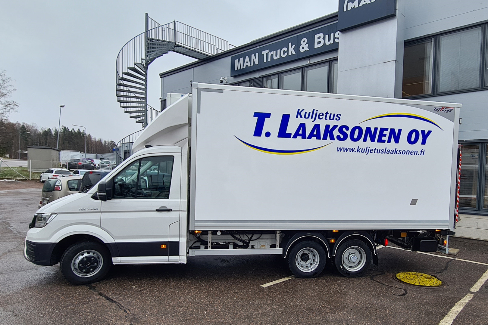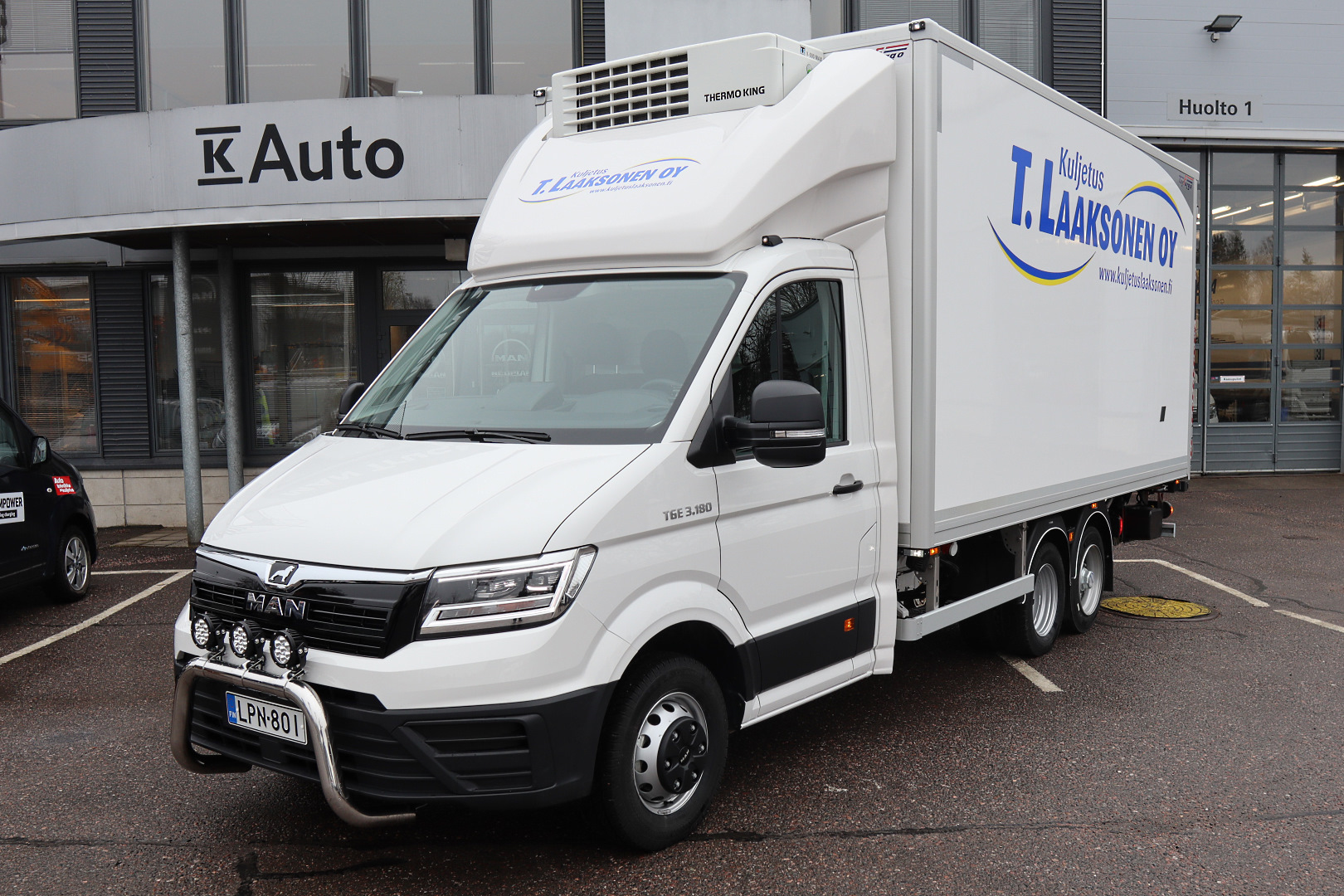 Kuvan pakettiautoyhdistelmä luovutettiin huhtikuun lopulla asiakkaalle. Auto tullaan näkemään pääkaupunkiseudulla elintarvikkeiden jakeluhommissa. Perusautona on 180 hevosvoimainen ja 8-vaihteisella automaattivaihteistolla varustettu MAN TGE. Auton alusta on mitoitettu viiden tonnin painoille. Kuormatilan tilavuus on 26,5 kuutiometriä. Akseliväliä pidentämällä saadaan tilaa jopa 33 kuutiometriä.