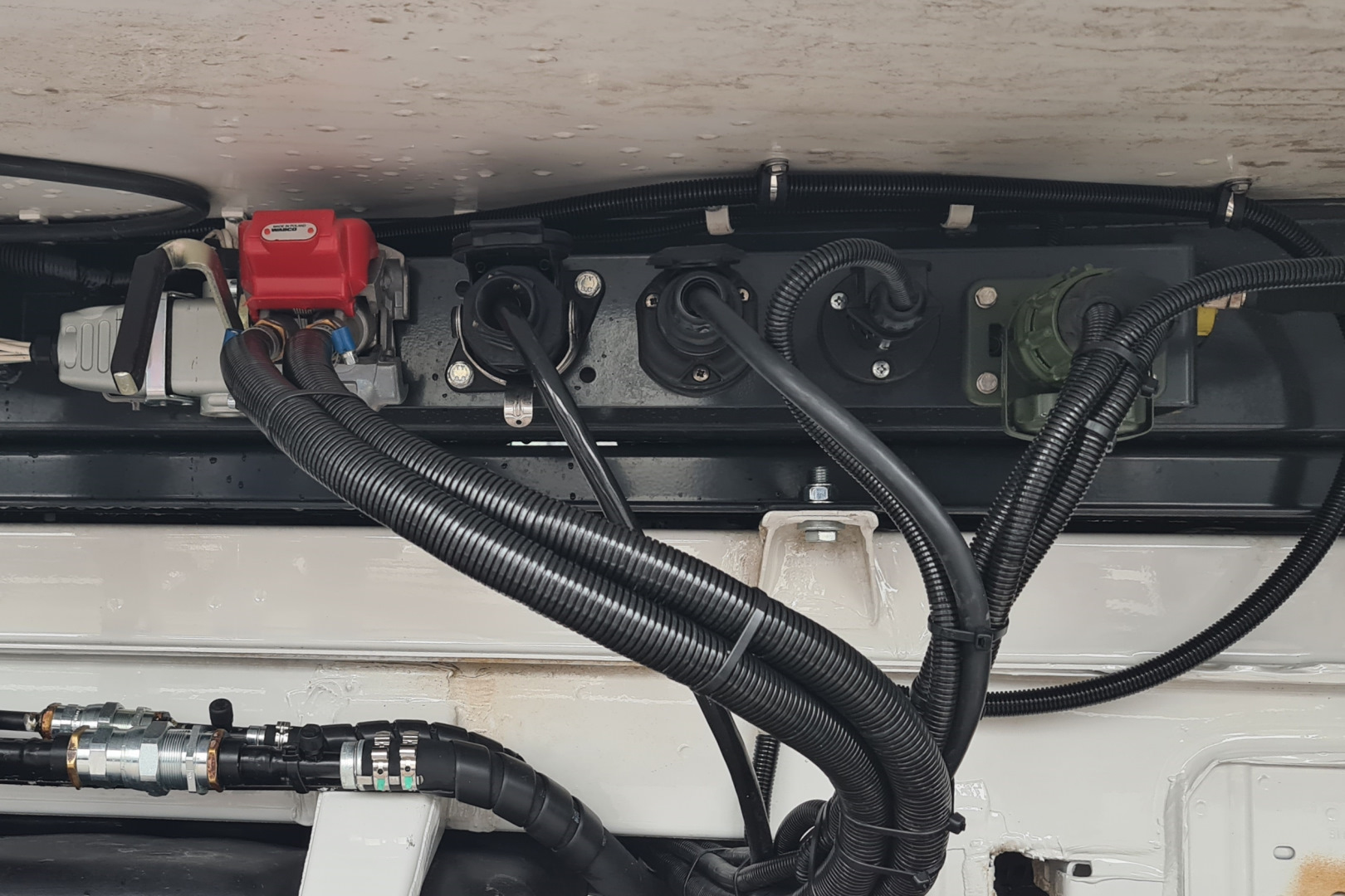 Rekisteröintikriteerit edellyttävät puoliperävaunun eli tässä tapauksessa kuormatilan olevan irrotettavissa. Se onnistuu helposti. Mekaanisesti rungot ovat kiinni toisissaan pulttiliitoksin. Sähköjen, ilmajarrujen ja -jousituksen säädön liitännät on toteutettu perävaunuista tutuilla pikaliitännöillä. Tuotepaketti on siis valmis.