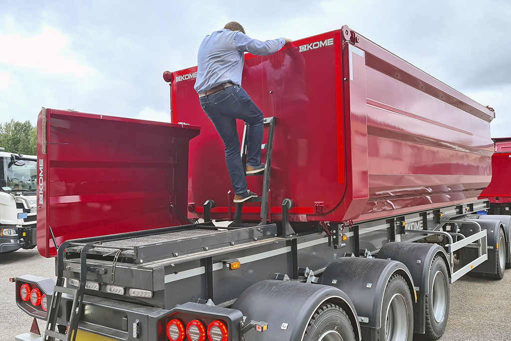 Sekä auton että perävaunun lavat ovat Komen Smart-mallistoa. Tyyppinimi ei kerro niinkään digitaalisista sovelluksista tai kosketusnäytöistä vaan huolellisesti mietitystä toteutustavasta, joka mahdollistaa tuotteen räätälöinnin asiakastarpeen mukaan edullisesti, helposti ja jopa jälkikäteen.