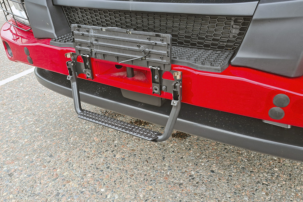 ”Jos asiakas huomaa viime hetkellä, että lapioteline olisi sittenkin pitänyt tilata mukaan, kysymys kuuluu lähinnä, että minkä värisenä sen haluat”, Saarnio kuvailee mahdollisuuksia. ”Varusteet kiinnitetään pulttiliitoksin valmiisiin paikkoihin, jolloin poraamista, hitsaamista tai maalaamista ei tarvita.”