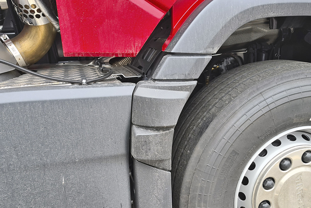 Tämänkertainen koeajettavana ollut Scania R 650 B8x4NZ on tehtaan linjalta valmistunut kolmeakselisena, paraabelijousisena tasakuorma-autona. Scania Suomen Seinäjoen toimipisteessä siihen on asennettu ilmajousitettu toinen etuakseli. Tuotantolinjalta ei Scanialla tämän tyyppistä akselistoratkaisua saa, mutta Seinäjoella sellainen järjestyy jo yli 35 vuoden lisäakseliasennusten kokemuksella.