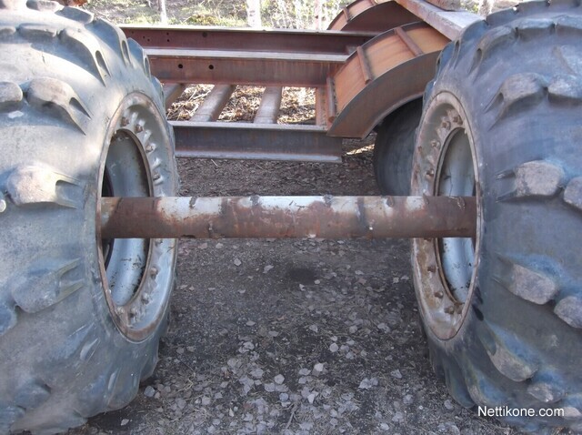 Kuorma-auton perävaunun akseli , leveillä ja kantavilla renkailla, kyseisijä renkaita löytyy useampikin, kuljetus kotipihaan samaan hintaan 0400-778459