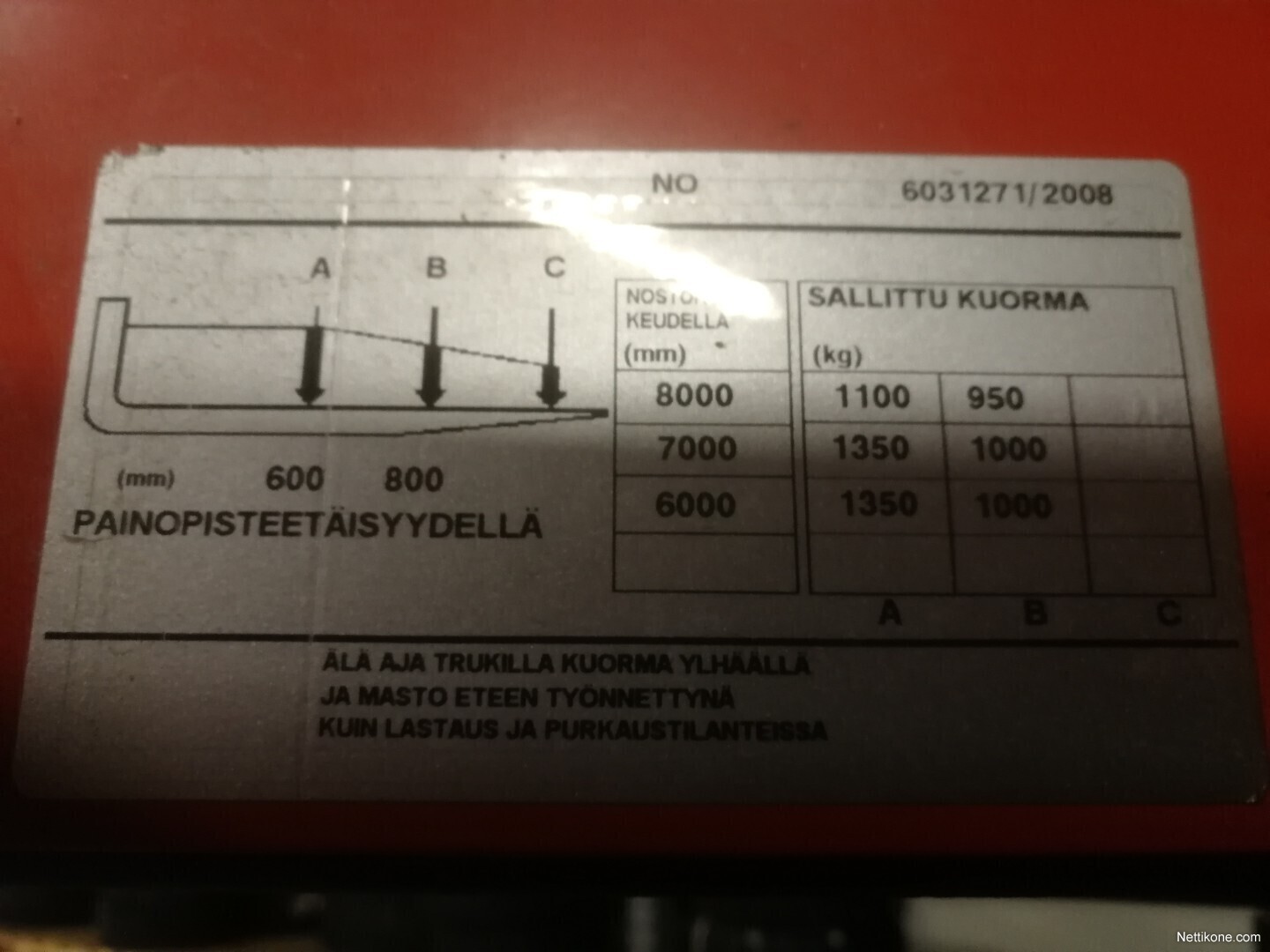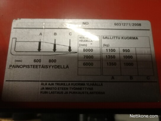Nostokorkeus 8000mm, ajokorkeus 3400mm.