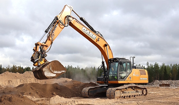 Juho Manninen on erittäin tyytyväinen uusimman Casen, CX300D (30 t/161 kW), toimivuuteen. 10 000 käyttötuntia tuli juuri siis täyteen, ja ne ovat kertyneet Juhon mukaan mittariin ilman korjaamokäyntejä. Mies hämmästeleekin korjausten vähyyttä, joka kuulemma pätee myös muissa talon Case-koneissa. Taukopäiviä korjausten takia ei tälle koneelle ole kertynyt.