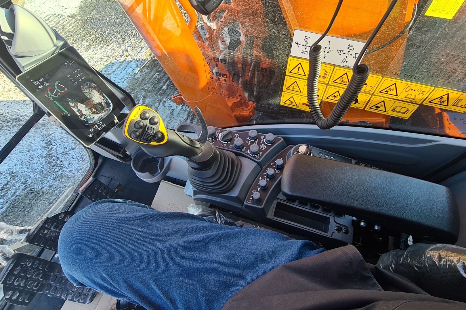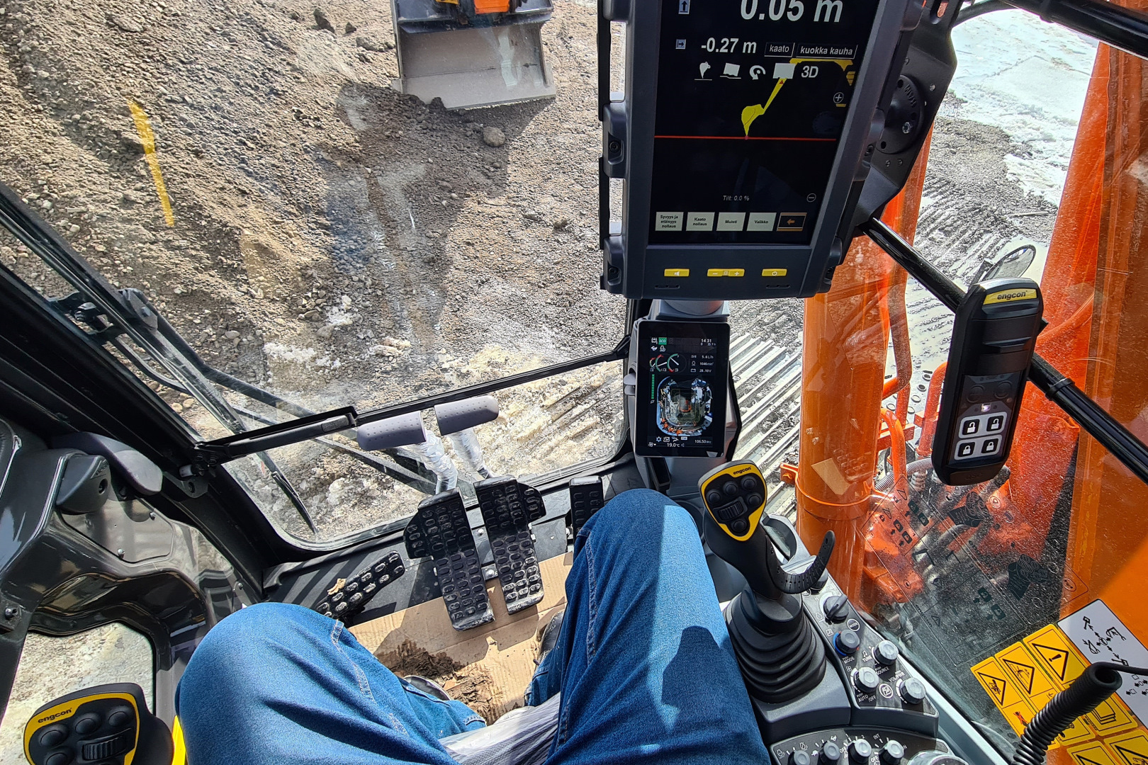 Koneessa on vakiona 270 asteen kamerajärjestelmä (Aerial Angle), joka tuottaa kuvaa LCD-näytölle. Kuljettaja voi valita, minkä kameran näkymiä hän haluaa näytöllä näkyvän. Hydrauliikan toimintojen sulkuvipuun ylettyy hyvin vasemmalla kädellä penkillä istuenkin, joten enää ei tarvitse kurottautua eteen lukitusta poistamaan.