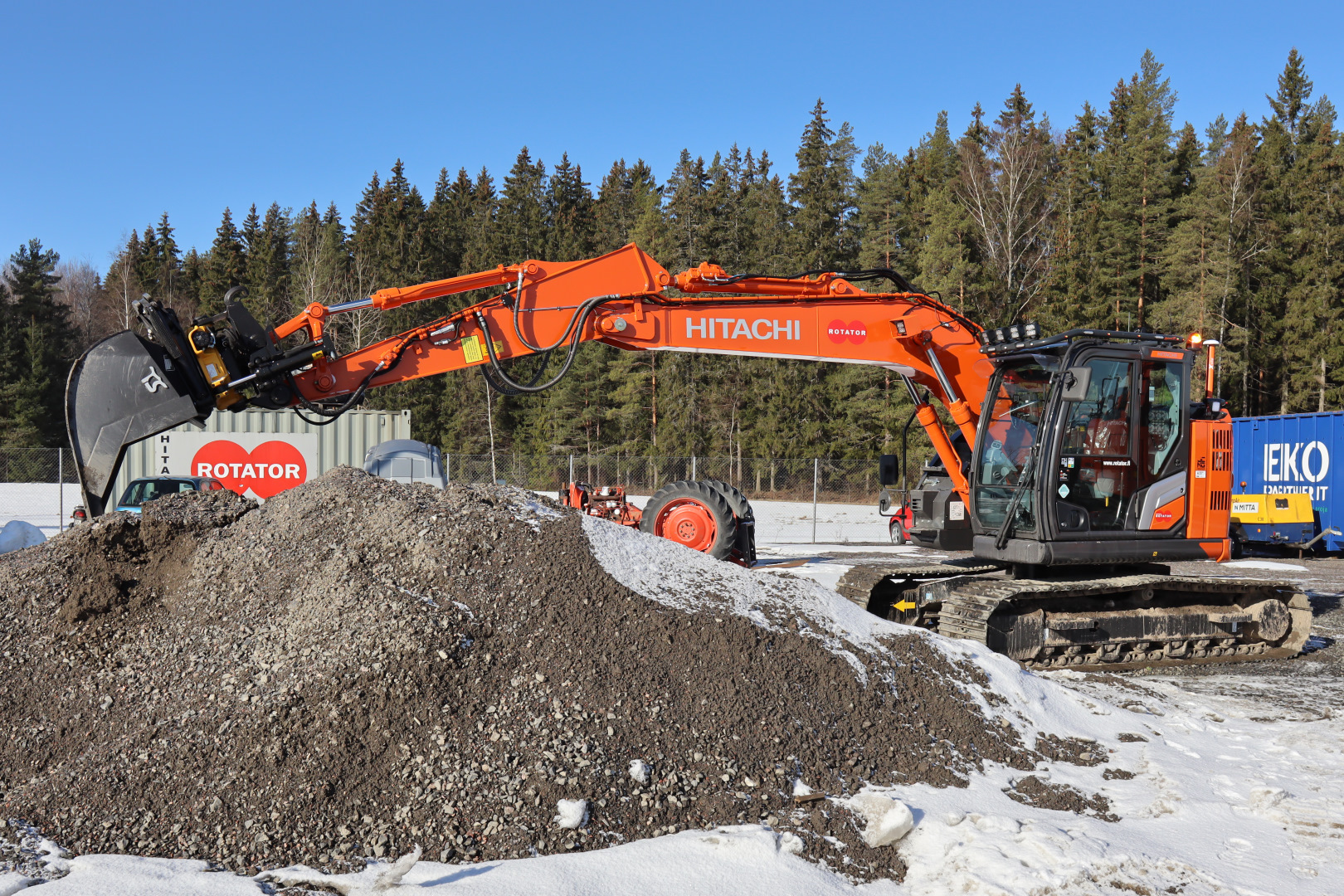 Tämä Hitachin uusin 7-sarjalainen tullaan näkemään vuoden mittaan konealan eri tapahtumissa kautta maan. Tilaisuuksissa pääsee yleensä myös kokeilemaan koneen hydrauliikan toimivuutta kuljettajan penkiltä käsin.