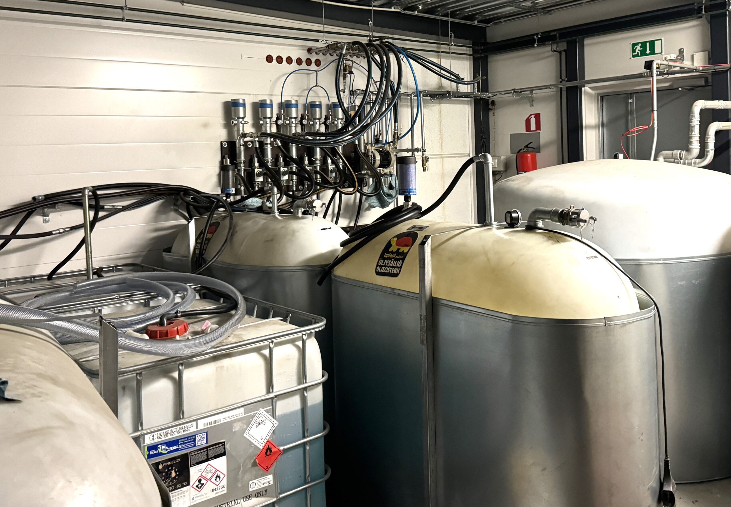 ”Voitelukeskuksella on tarjota voiteluainevarastoksi Lube Cube -kontti, johon voi sijoittaa kaikki tarvittavat säiliöt, mutta meillä on tiloissamme jo valmiiksi avarat säiliötilat, jonne Voitelukeskuksen kaverit vetivät tarvittavat letkutukset nopeasti ja siististi. Kaikki asennukset sujuivat muutenkin ongelmitta ja meidän tarpeemme huomioiden. Siisteys ja järjestelmällisyys lisääntyvät vielä entisestään, kun saamme uudet suodatinhyllyt, joiden täytön Voitelukeskus hoitaa”, kiittelee Rantala.