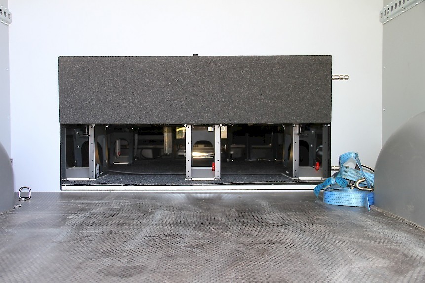 Kokoluokan kautta koeajoautoon jää suuren matkustamon taakse vielä reilu, noin kuuden kuution tavaratila. Tavaratila on vaneroitu sekä hyvin valaistu, ja jämerät kiinnityslenkit sekä seinäkiskot varmistavat turvalliset kuljetukset. Väliseinän alaosa on myös varustettu pitkän tavaran luukulla, jonka kautta mukaan mahtuvat myös lähes viiden metrin pituiset materiaalit. Tavaratilan muotoilun ansiosta esimerkiksi motocross-pyörät mahtuvat hyvin kyytiin ja tilaa jää runsaasti myös muulle kalustolle.