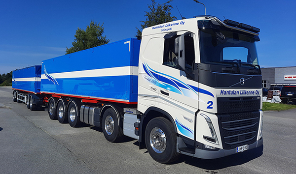 ”Rehun tai muun vastaavan, puhaltamalla purettavan materiaalin kuljetuksiin olemme tehneet useita kippaavalla jalkalavalaitteella ja kompressorilla varustettuja autoja.”