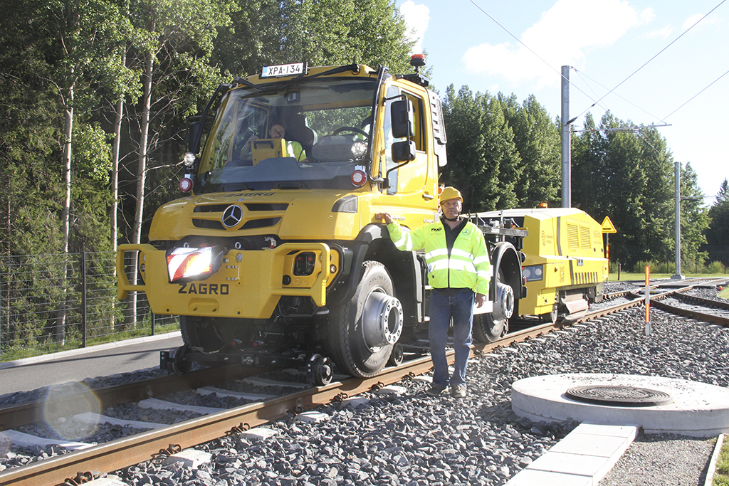 Tampereen Raitiotien tilaama Unimog toimitetaan ensi vuoden alussa, mutta jo nyt Unimog-työskentely on Tampereella vauhdissa. ”Saimme Veholta vuokrakoneeksi Unimog Road-Railerin, jota käytetään lähinnä koulutukseen, vaunujen siirtoihin sekä Vossloh HSG-hiontavaunun vetoon. HSG-kiskonhiontavaunun käytön oppiminen onkin hyvin tärkeää, sillä kiskojen hyväkuntoisuus on oleellisen tärkeää niin matkanteon luotettavuuden, turvallisuuden sekä matkustusmukavuuden kannalta. Kymmenen tonnin akselipaino laittaa kiskot kovalle koetukselle ja mahdolliset ongelmat kertautuvat kovassa paineessa nopeasti. Nyt käynnissä oleva perusteellinen testaus- ja koulutustoiminta antaakin meille valmiudet suoriutua meille asetetuista kovista toimintavaatimuksesta kaikissa olosuhteissa raitioliikenteen lopullisesti käynnistyessä ensi vuoden elokuussa”, Huttunen päättää.
