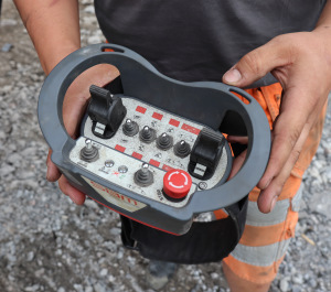 Purkupään magneetissa on hydraulinen nosto, joka hoituu kätevästi kauko-ohjaimen avulla. Kauko-ohjain itsessään on Rogerin mielestä hämmästyttävän pienikokoinen. Näin sen käsittely kaivukoneen ohjaamossa on helppoa. Vatsalaukkuasennossakaan se ei ole kaivettaessa tiellä.