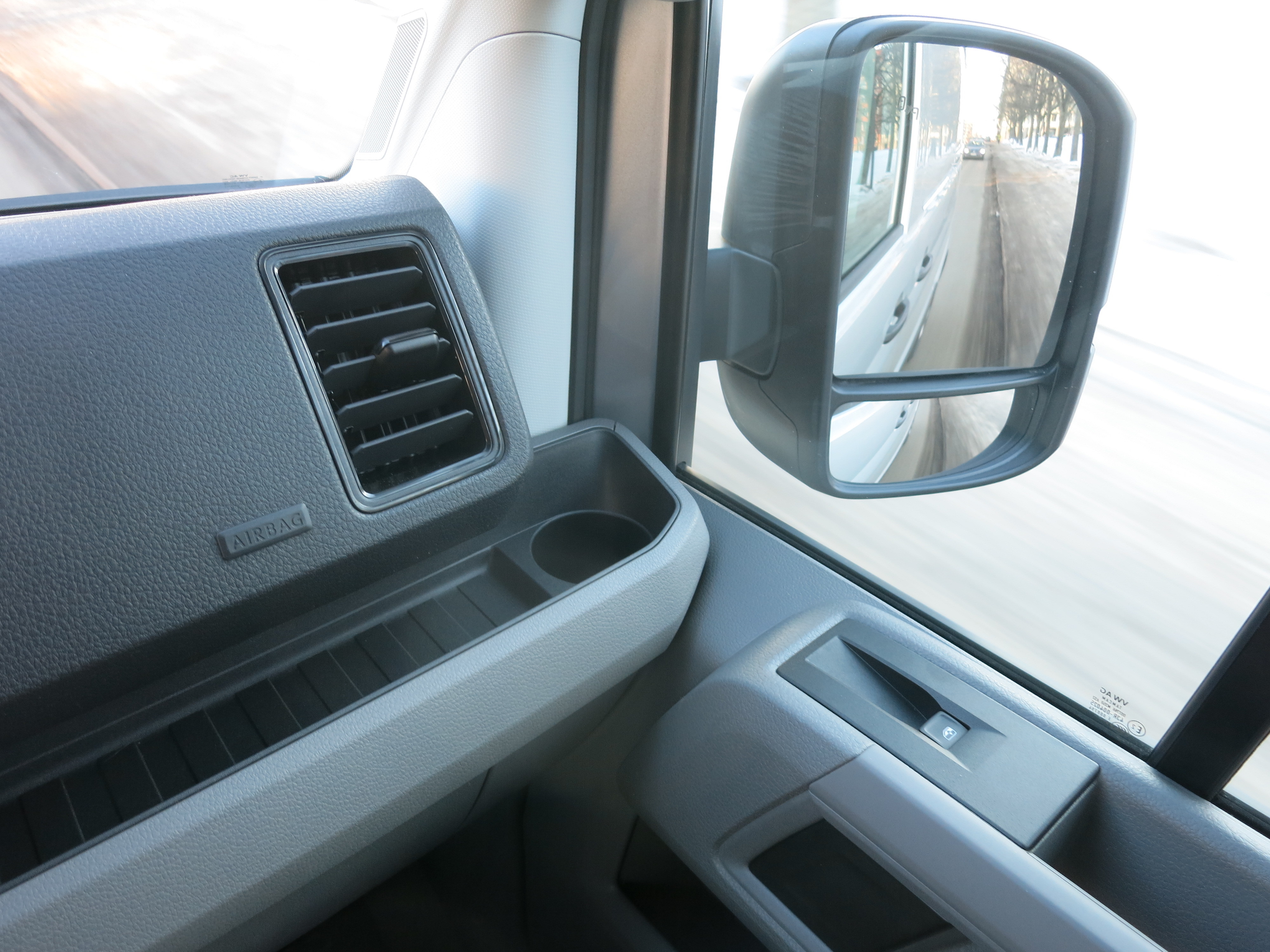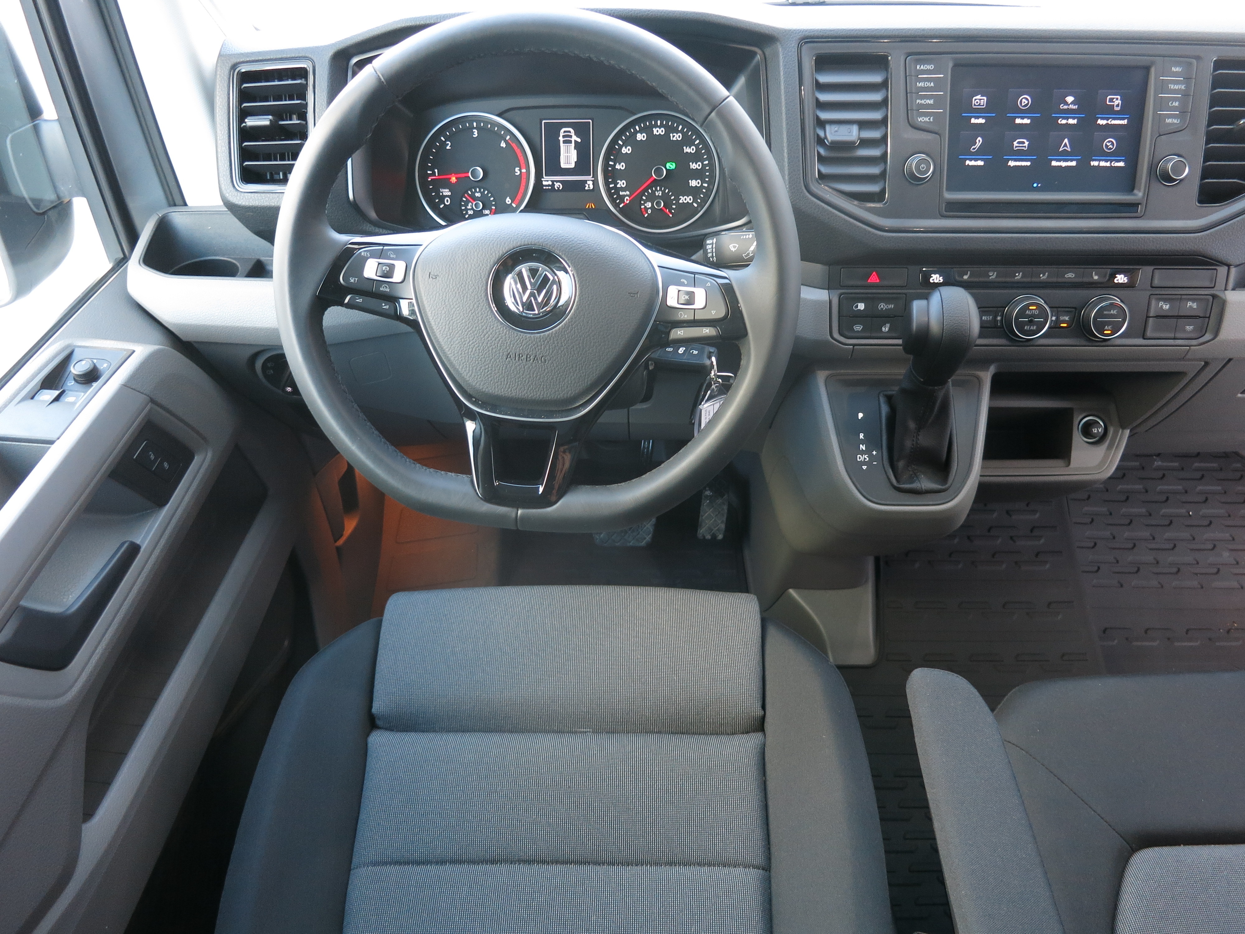 Yleistunnelma ohjaamossa on volkkarimaisen asiallinen. Monet ratkaisut ja nappulat ovat tuttuja VW:n henkilöautomallistosta, mikä ei luo kovin tavara-automaista tunnelmaa. Monitoimirattikin on kuin henkilöautosta: yllättävän pienikehäinen ja muodikkaalla suoralla alareunalla.