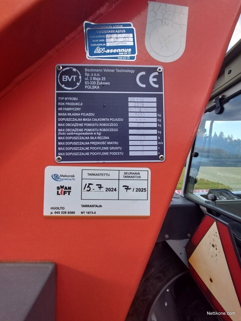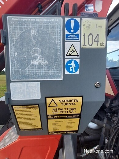 Nostokorkeus 16 m, työalue 340 astetta. Vakaa ja jämäkkä nostin, täsmälliset ja sujuvat ohjausliikkeet.