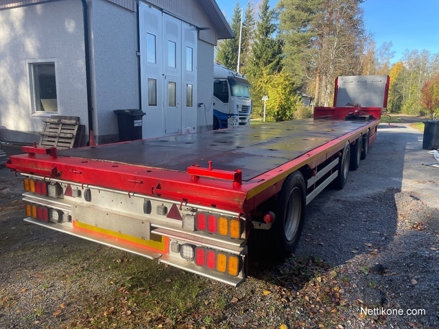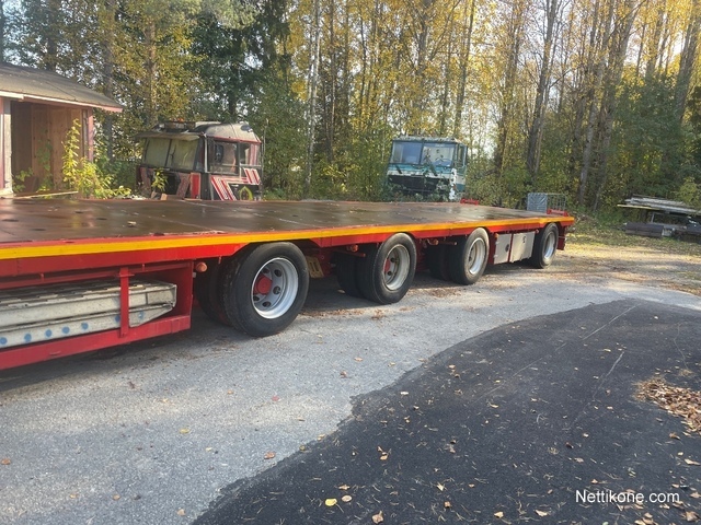 Ruotsista tuotu, sovitettu Suomeen, hiekkapuhallettu, maalattu, uusi jarrujärjestelmä, mitat: leveys 2,55, pituus 16,80, 4,35 ylä, 12,45 alaosa, paljon Laxo-hylsyjä. 1. ja 3.akseli nousee: Kaksi kääntyy:1. vapaasti ohjautuva, 4. hydraulisesti, virta autosta.