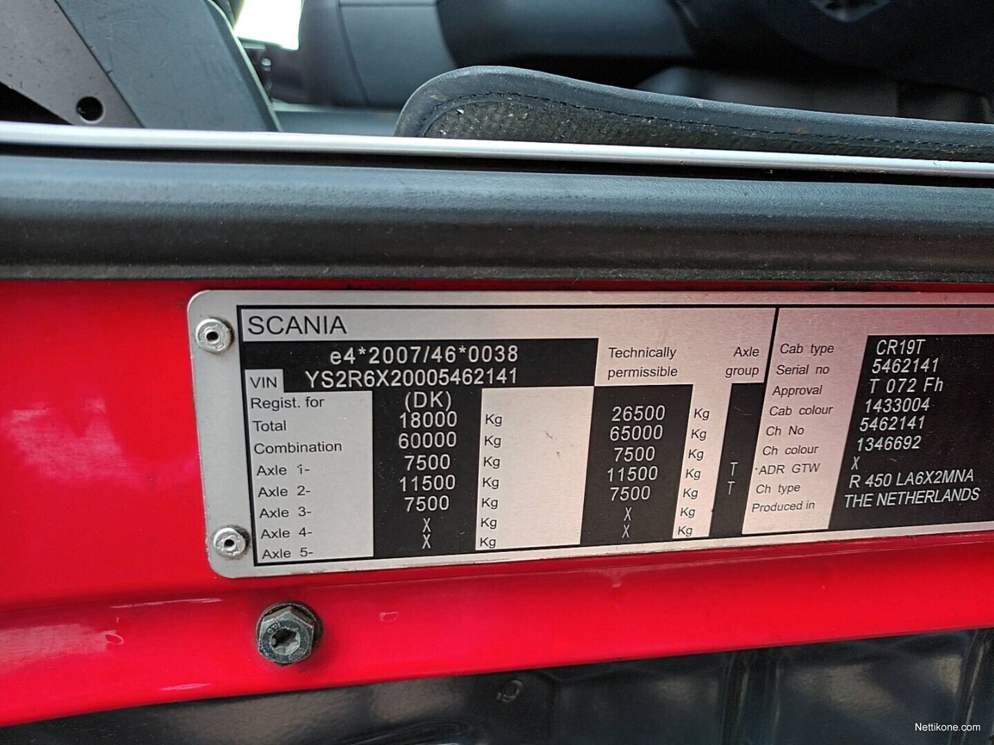 Power: 331 Kw / 450 HpGross weight: 26 500 kgTrailer attachment: N/AChassis number: YS2R6X20005462141Emission standard: Euro 6Gear box type: AutomaticGear slower: YesRear axle: Single reductionCabin type: HighCabin color: RedSuspension type: Steel-/air suspensionBreak type: Disc brakes