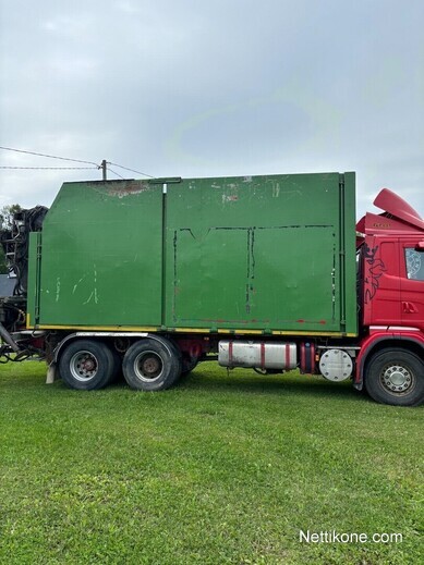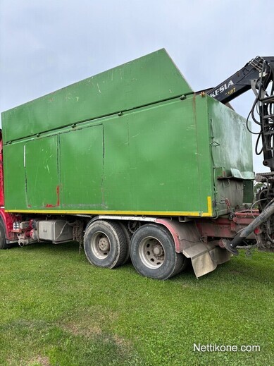 Myydään tarpeettomana Scania risuauto, konttissa toinen kylki aukeava mutta kestää myös romun, kantojen, tukin ajon, mukaan nosturi kesla 2010T vm 2016, soittamalla lisätietoa.