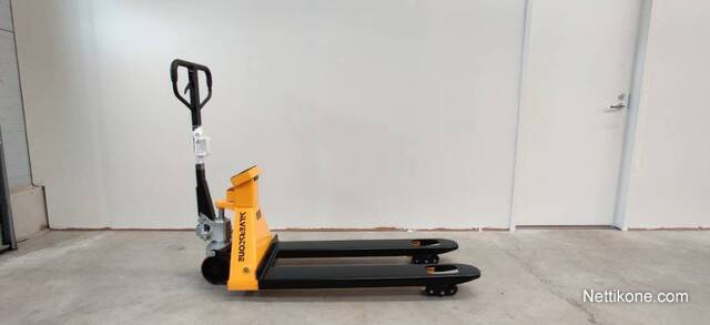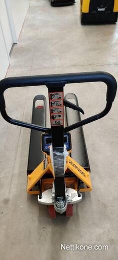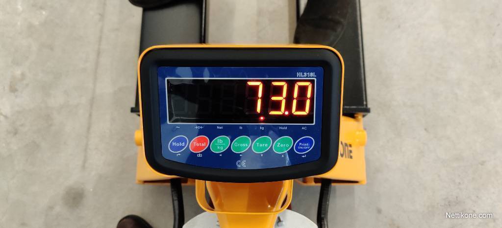 Kiinteä ja liikkuva punnitus, voidaan käyttää normaalina haarukkavaununa. Tarkkuus on 0,5% kokonaispainosta. 1 kg: n asteikko. Taaraustoiminto nettopainon lisäämiseksi tai poistamiseksi. 4 punnituskennoa punnitsee tarkasti epätasaiset kuormat. Sisäiset akut ladataan ulkoisella laturilla.