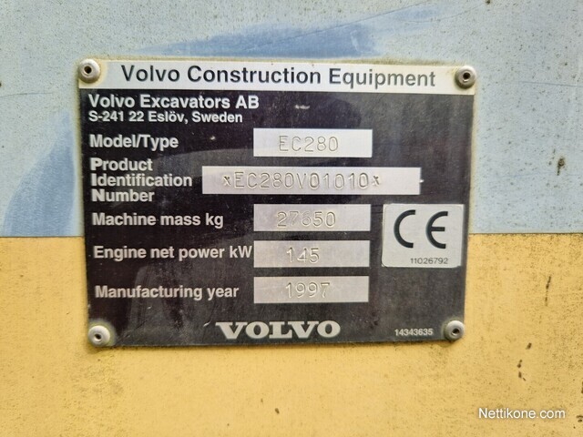 Call:7500 €Volvo EC280Nettikone ID 2625073Categorywise linksCheck vehicle information from Rekkari.fi Safety instructions Nettikone.comMost popular makes