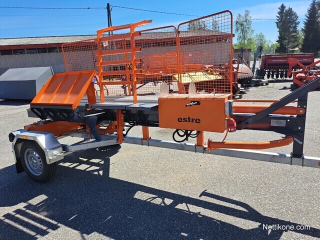 ESTRE SÄHKÖKÄYTTÖINEN HALKOMAKONE TRAILERILLA, HYDRAULINEN TERÄ JA PUUNNOSTO