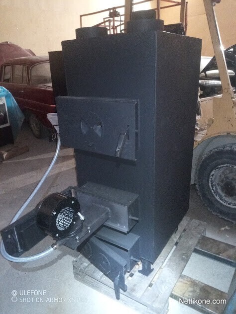 Uusi lämminilmakehitin termostaatti/ohjainlaite,valurauta arina,liekinkatkaisija, tulitiili vuorattu tulipesä.