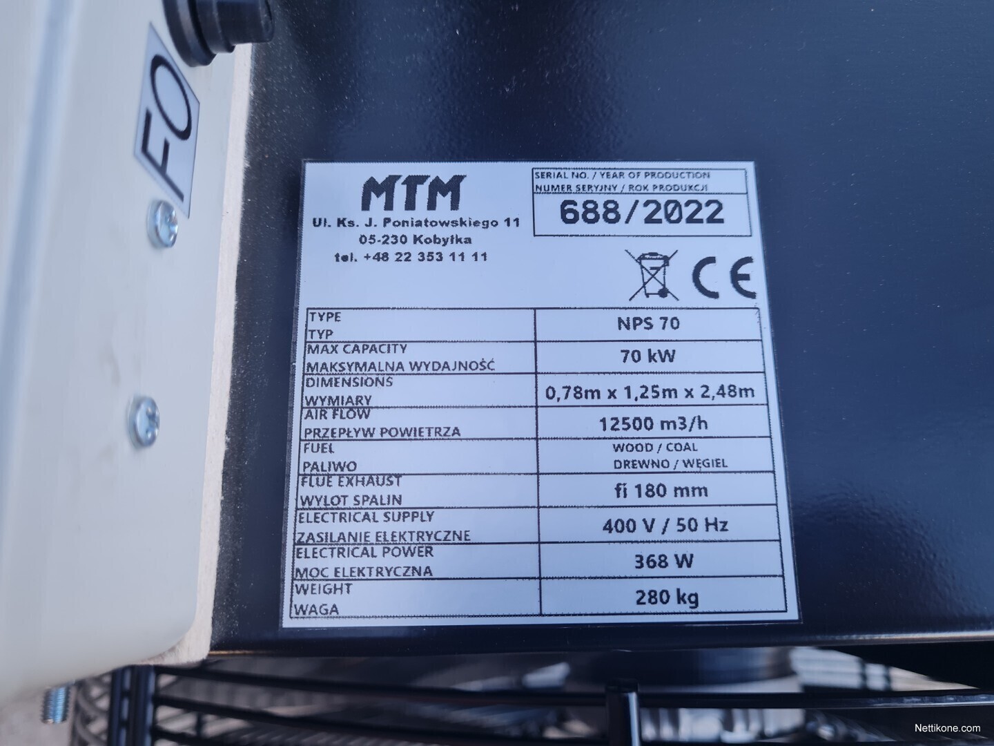 Puhallusteho 12500m3/h, Käynnistyy ja sammuu automaattisesti tietyn lämpötilan saavutettua
