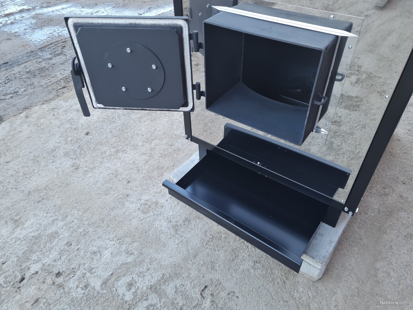Kattilaan mahtuu keskelle n.60cm pitkää klapia, reunoille lyhyempiä
