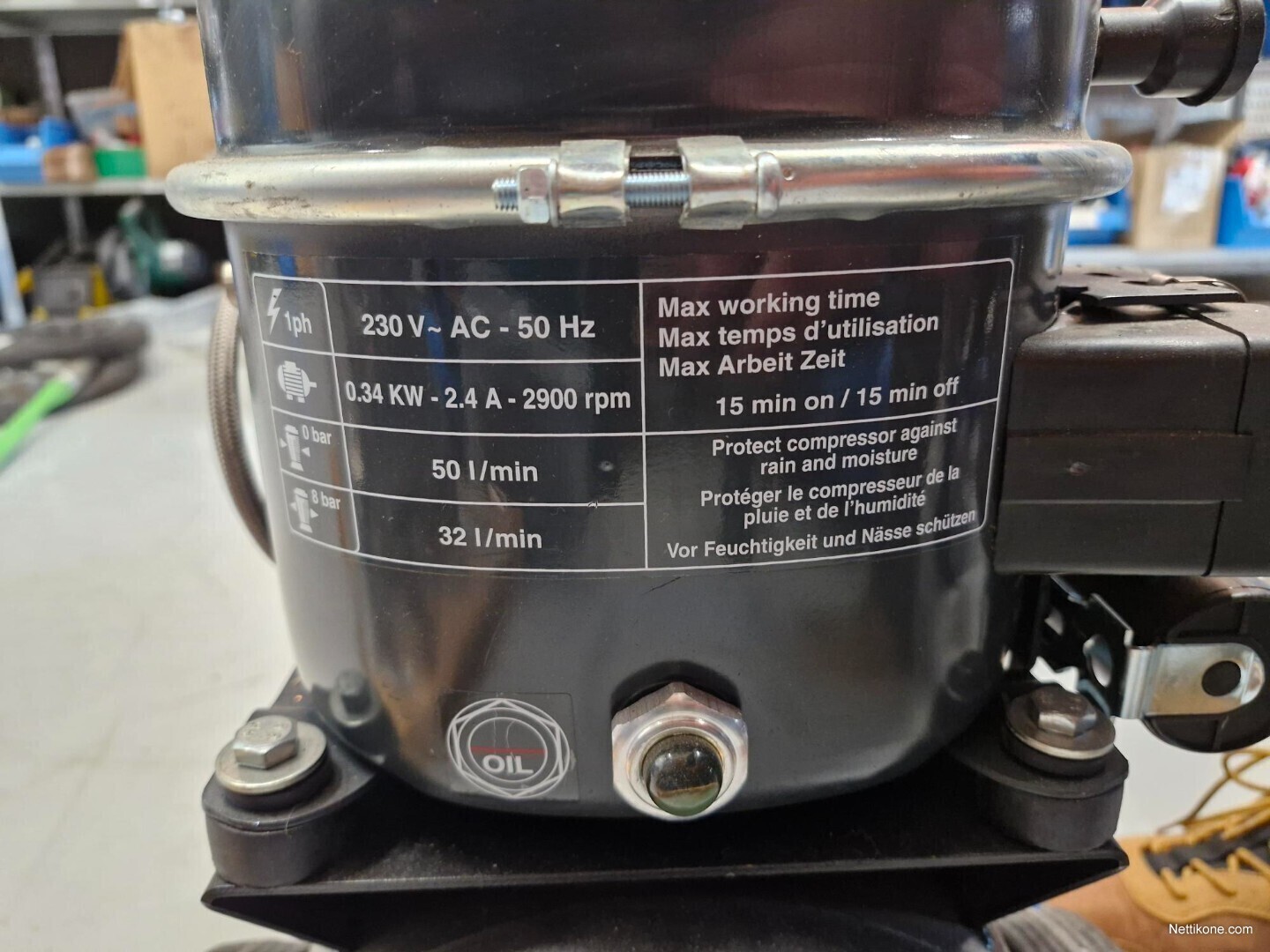 Lisätiedot Hiljainen kotikäyttöön öljyvoideltu mäntäkompressori 2:lla paineilmayksiköllä.